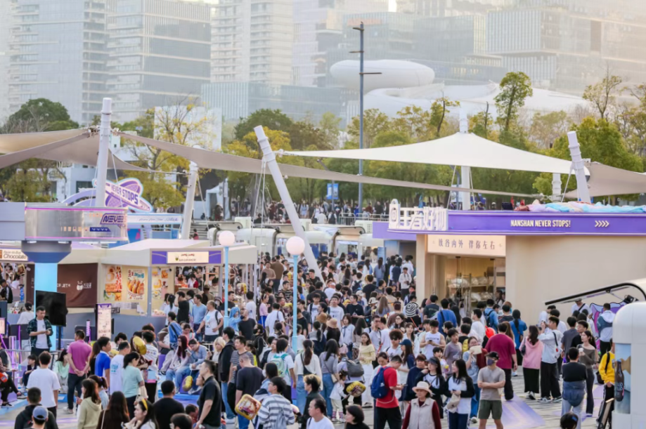 2025年末,深圳南山超级IP嘉年华采用巨大舞台帐篷保障了主舞台全天候、无间断演出,同时规划了人流,将主舞台的汹涌人潮自然导向周边的快闪商业区,大众在逛吃互动中感受多元乐趣,整场嘉年华将潮流音乐、创意市集与户外帐篷场景完美融合。