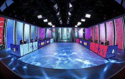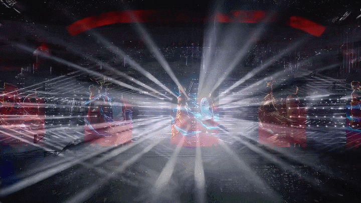 为了更贴合英雄联盟的主题,S10的舞台完全成为了一个赛博朋克式的科幻世界,同时为观众带来了突破次元壁般的沉浸式感官体验。